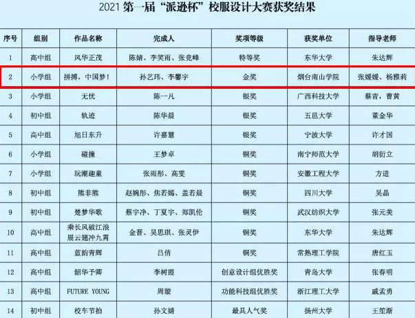 南山學(xué)院學(xué)子喜獲2021第一屆“派遜杯”校服設(shè)計(jì)大賽金獎(jiǎng)