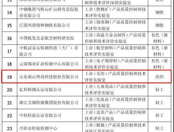 南山智尚入圍工業(yè)產(chǎn)品質(zhì)控和技術(shù)評價實驗室名單