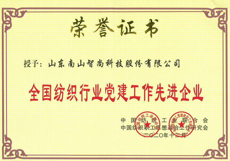 南山智尚獲評(píng)全國(guó)紡織行業(yè)黨建工作先進(jìn)企業(yè)