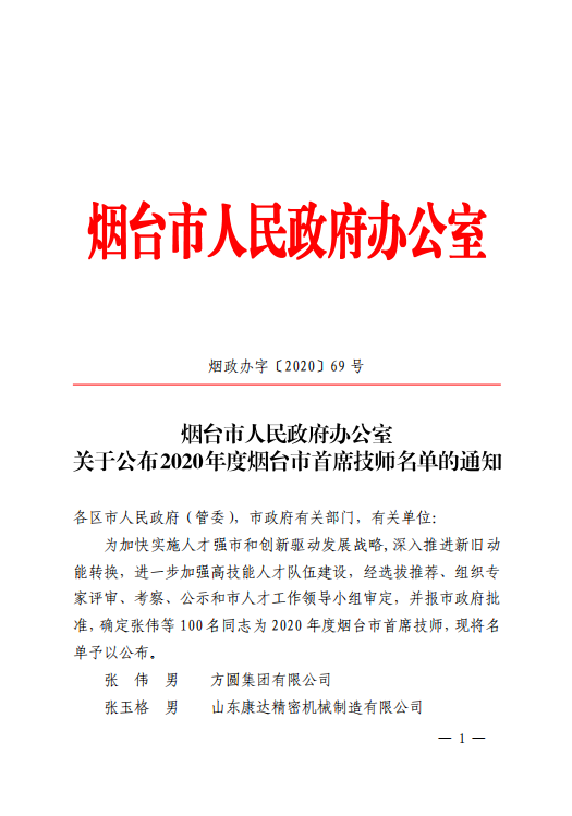 南山集團公司兩員工獲評2020年度煙臺市首席技師