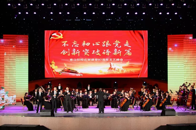 6月29日晚,集團(tuán)公司慶祝建黨97周年文藝晚會(huì)在南山老年大學(xué)陽光大舞臺(tái)隆重舉行。演出以“不忘初心跟黨走 創(chuàng)新突破譜新篇”為主題,熱情謳歌了中國共產(chǎn)黨的豐功偉績,表達(dá)了全體南山人愛國、愛黨、愛企的真摯情感。集團(tuán)公司主要領(lǐng)導(dǎo),企業(yè)員工、學(xué)校師生和居民代表近2000人到場觀看了演出。