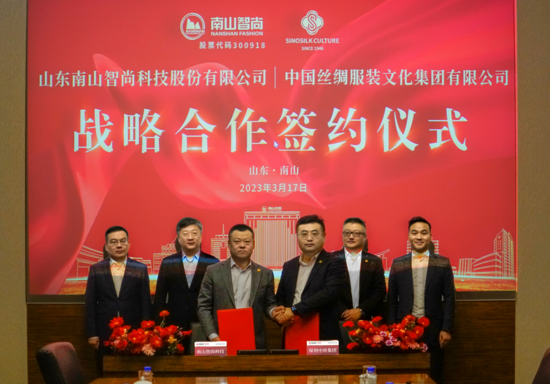 日前,山東南山智尚科技股份有限公司與中國(guó)絲綢服裝文化集團(tuán)在山東南山會(huì)議中心就戰(zhàn)略合作進(jìn)行了深入探討溝通,南山智尚董事長(zhǎng)兼總經(jīng)理趙亮、服飾公司總經(jīng)理王劍、精紡公司總經(jīng)理劉剛中和中國(guó)絲綢服裝文化集團(tuán)董事長(zhǎng)朱立、副董事長(zhǎng)蔡云杰、總經(jīng)理董健等主要領(lǐng)導(dǎo)出席了此次會(huì)議。