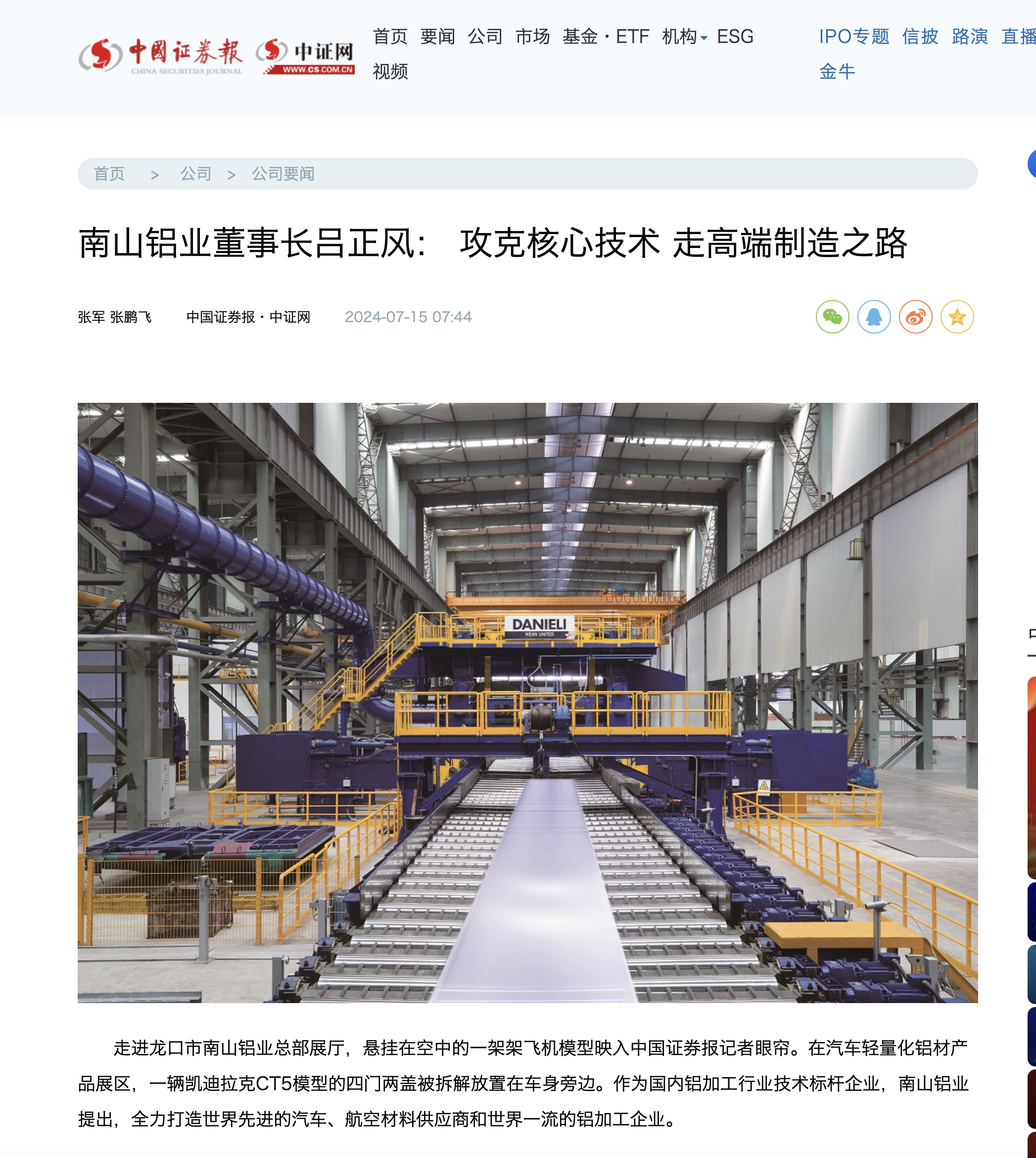 中國(guó)證券報(bào):南山鋁業(yè)攻克核心技術(shù) 走高端制造之路