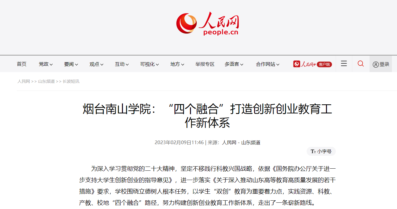 光明網(wǎng):煙臺南山學(xué)院“四個融合”打造創(chuàng)新創(chuàng)業(yè)教育工作新體系