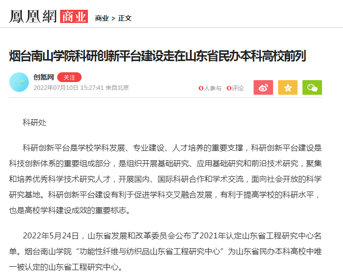 煙臺南山學院科研創(chuàng)新平臺建設走在山東省 民辦本科高校前列-鳳凰網