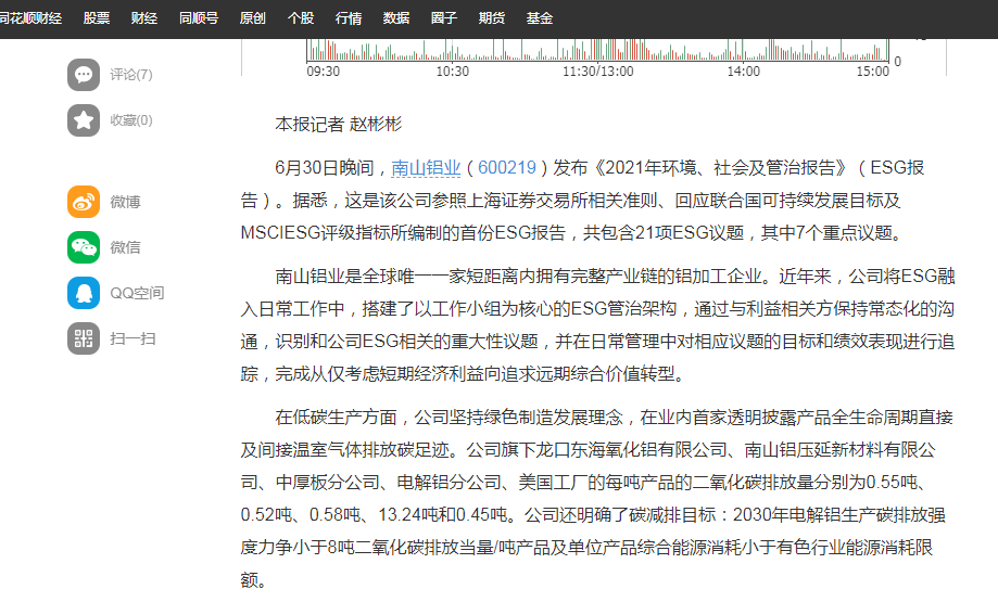南山鋁業(yè)發(fā)布ESG報告 努力打造負責(zé)任鋁企-同花順財經(jīng)