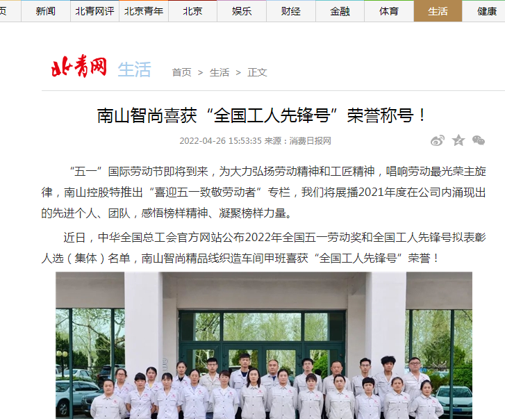 南山智尚喜獲“全國工人先鋒號”榮譽(yù)稱號!-中青網(wǎng)