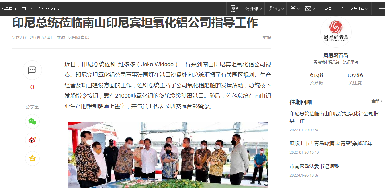 印尼總統(tǒng)蒞臨南山印尼賓坦氧化鋁公司指導工作-鳳凰網(wǎng)