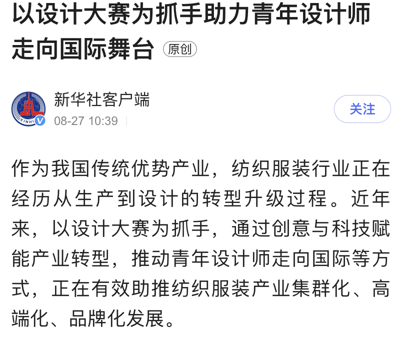 8月26日,以“智見不凡、鏈動時尚”為主題的南山智尚杯·中國正裝設(shè)計大賽新聞發(fā)布會在北京正式啟動。本次大賽由山東南山智尚科技股份有限公司與中國服裝設(shè)計師協(xié)會共同主辦,大賽以創(chuàng)意設(shè)計為抓手、以南山智尚面料為載體,匯聚“名?!?、“名師”、“名家”、“名企”,致力于共同推動全球正裝新銳設(shè)計力量的崛起,培育正裝設(shè)計領(lǐng)域的“未來新生代”。