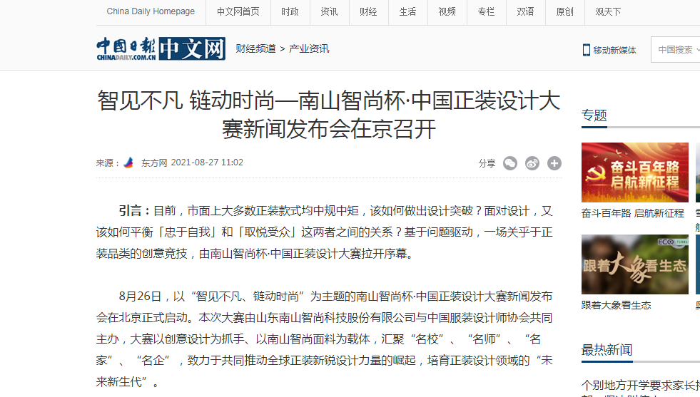 南山智尚杯·中國正裝設(shè)計大賽新聞發(fā)布會在京召開-中國日報