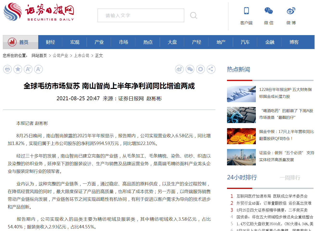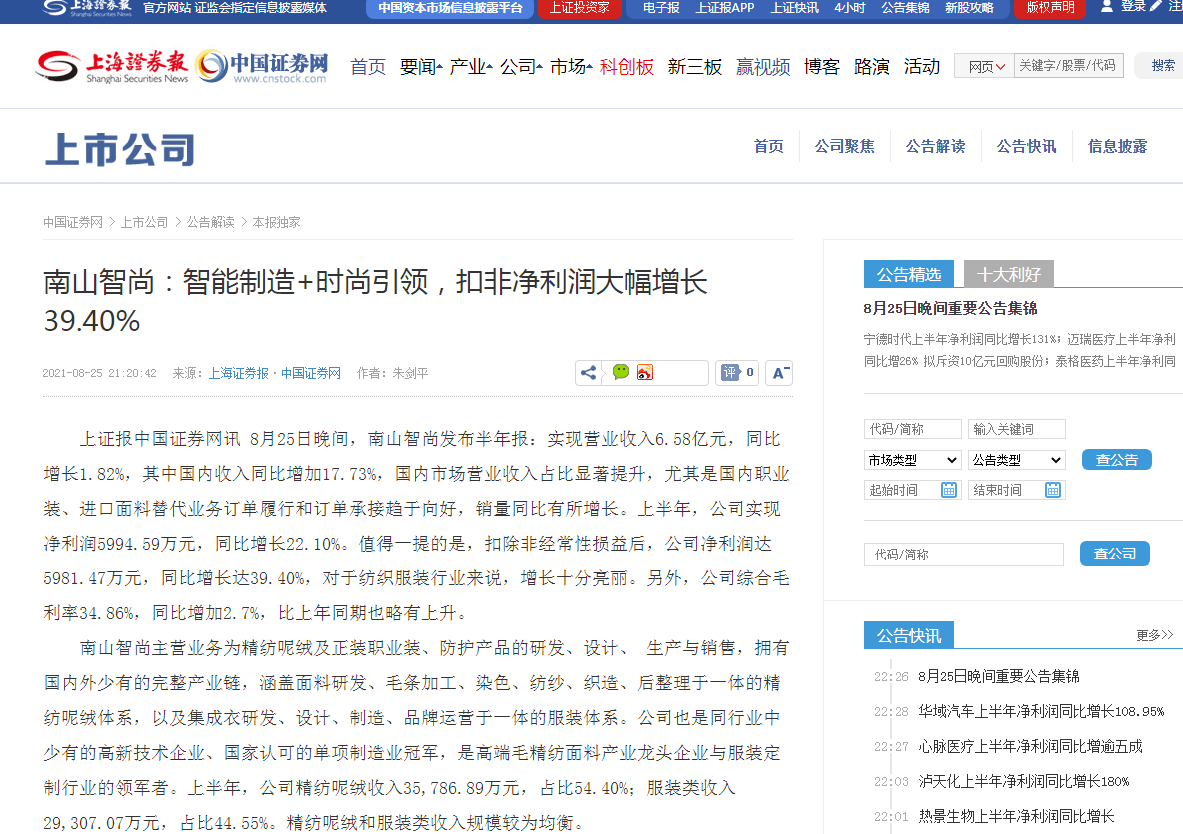 南山智尚上半年凈利潤(rùn)同比增逾兩成-證券日?qǐng)?bào)