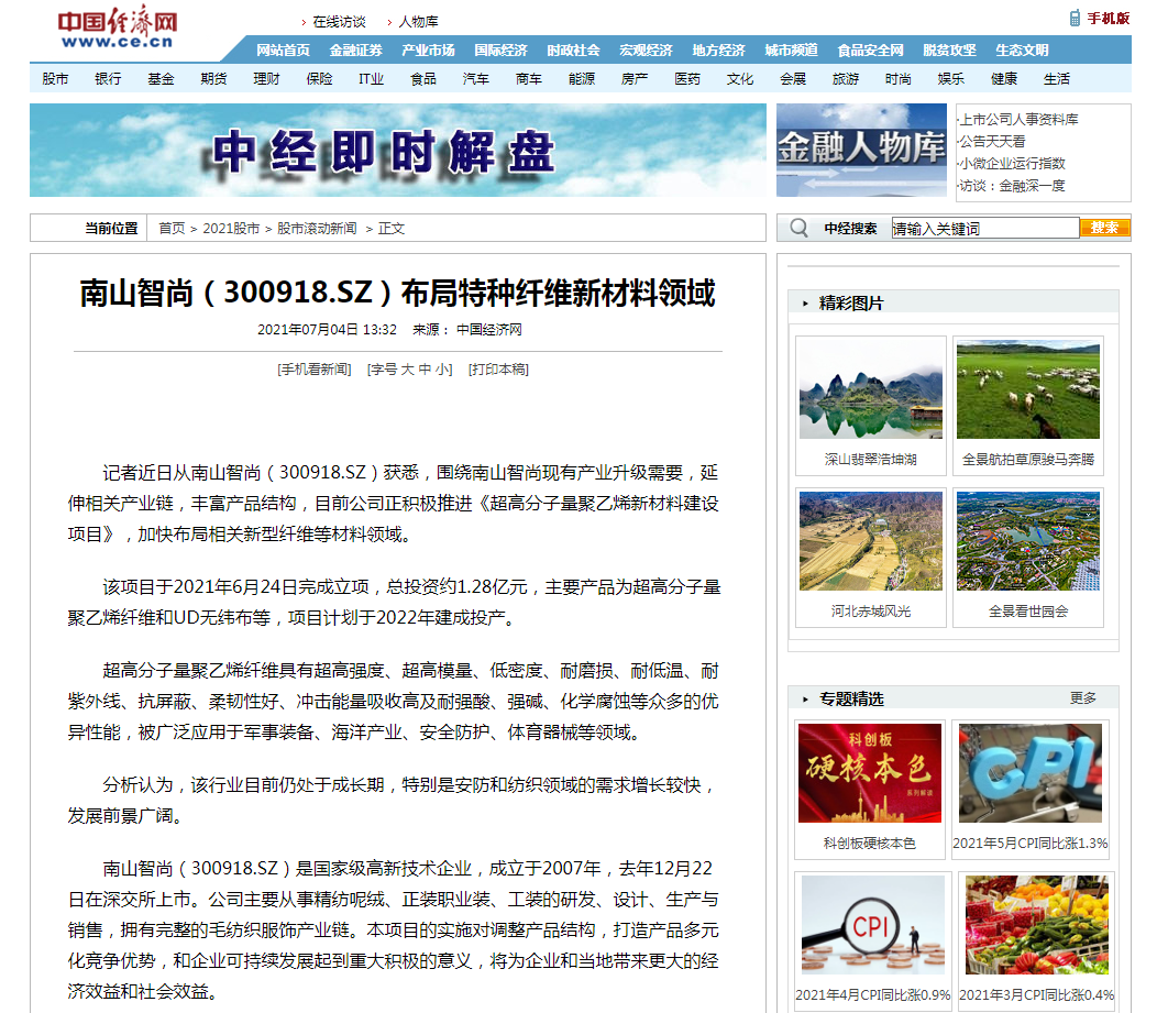 南山智尚布局特種纖維新材料領(lǐng)域-中國(guó)經(jīng)濟(jì)網(wǎng)