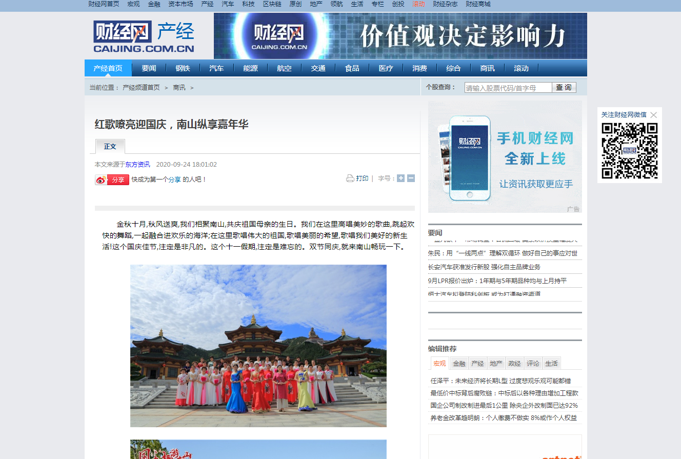 紅歌嘹亮迎國慶,南山縱享嘉年華-財(cái)經(jīng)網(wǎng)