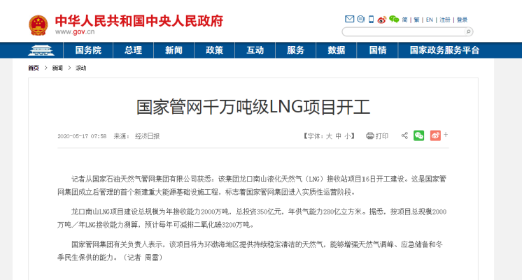 國(guó)家管網(wǎng)千萬噸級(jí)LNG項(xiàng)目開工-中國(guó)政府網(wǎng)