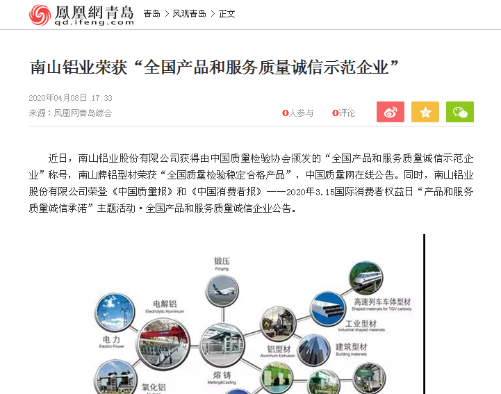 南山鋁業(yè)榮獲“全國產(chǎn)品和服務(wù)質(zhì)量誠信示范企業(yè)”-鳳凰網(wǎng)