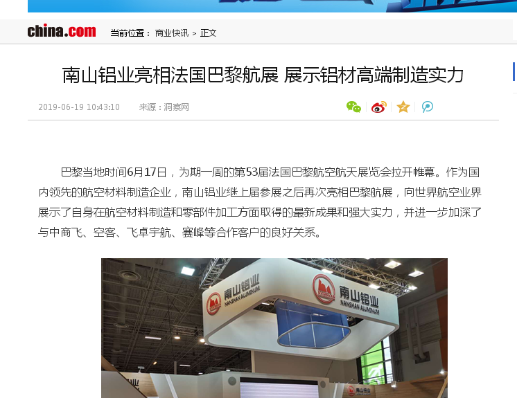 南山鋁業(yè):產(chǎn)品配套世界航空巨頭 高端制造引領(lǐng)高質(zhì)量發(fā)展-海報(bào)新聞