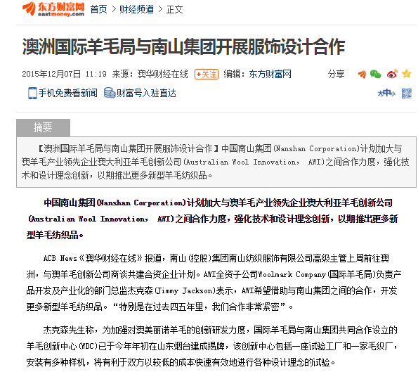 澳洲國(guó)際羊毛局與南山集團(tuán)開展服飾設(shè)計(jì)合作-東方財(cái)富網(wǎng)