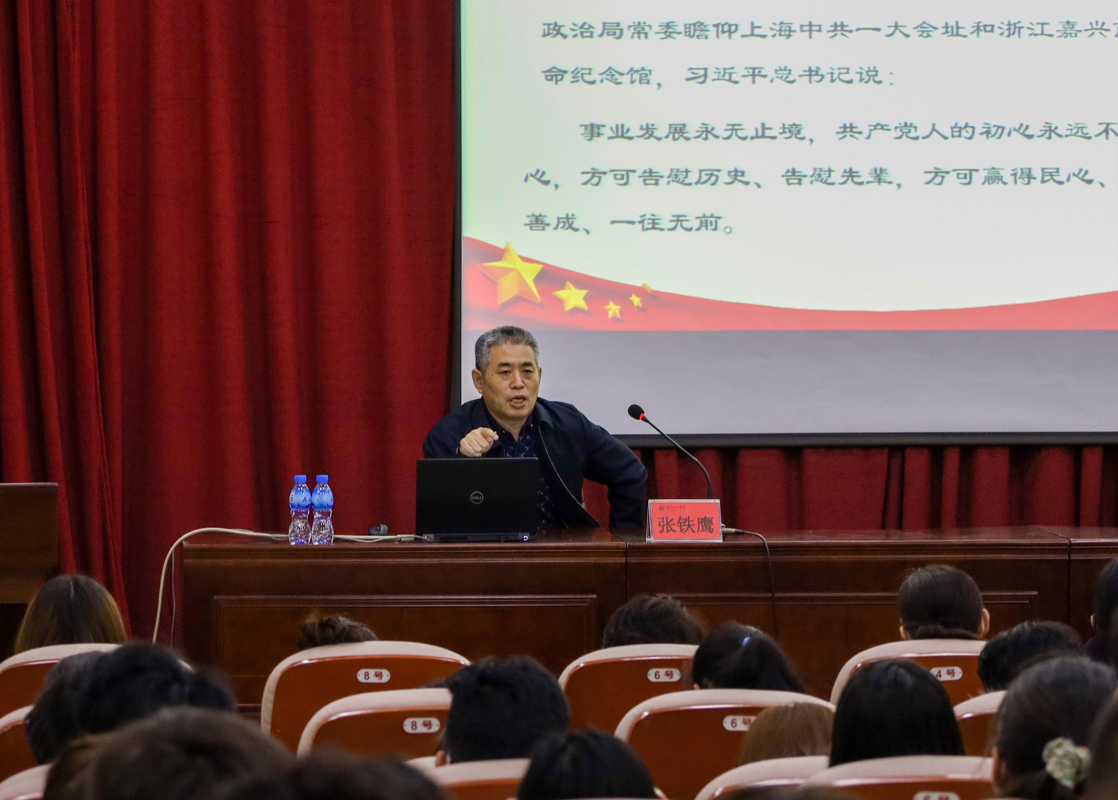 近日,為迎接建黨100周年華誕,中共煙臺市南山職業(yè)技術學??傊Р课瘑T會邀請了龍口市“習語潤心”百姓宣講團骨干成員、龍口市新時代文明實踐五星級志愿者、龍口市道德模范張鐵鷹老師到校做黨史學習報告。