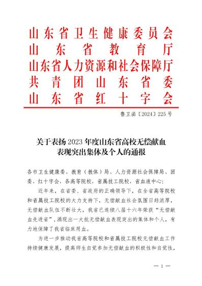 近日,山東省衛(wèi)生健康委員會、山東省教育廳、山東省人力資源和社會保障廳、共青團(tuán)山東省委和山東省紅十字會聯(lián)合印發(fā)的《關(guān)于表揚(yáng)2023年度山東省高校無償獻(xiàn)血表現(xiàn)突出集體及個(gè)人的通報(bào)》,煙臺南山學(xué)院在無償獻(xiàn)血工作中表現(xiàn)優(yōu)異,多個(gè)單位及個(gè)人獲省級表彰,學(xué)校青年志愿者協(xié)會連續(xù)兩年獲評“山東省無償獻(xiàn)血志愿服務(wù)表現(xiàn)突出集體”。