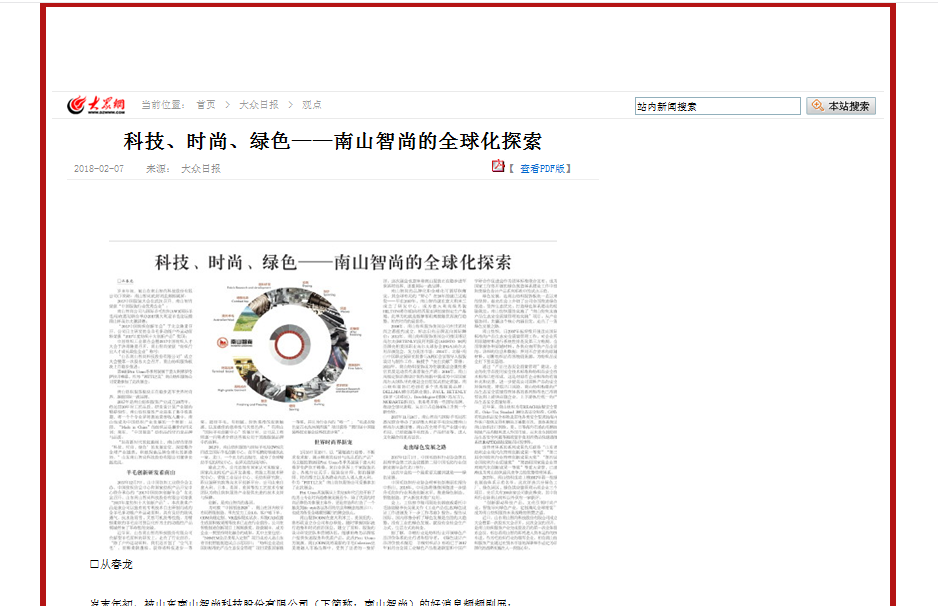 科技、時(shí)尚、綠色——南山智尚的全球化探索-大眾日?qǐng)?bào)